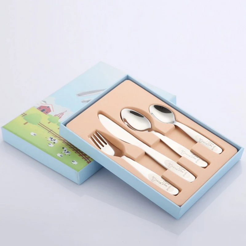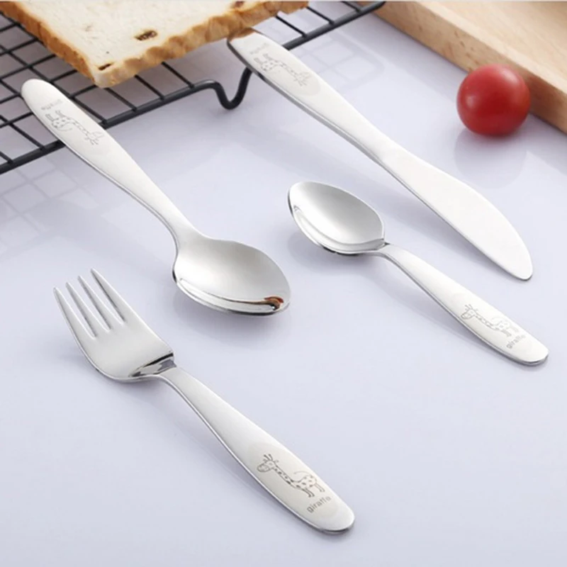 Baby feeding food spoon Stainless Steel Children's Western Tableware Cutlery Set Infant Feeding Spo