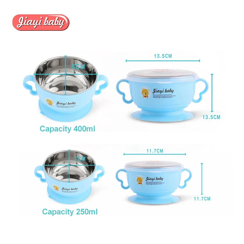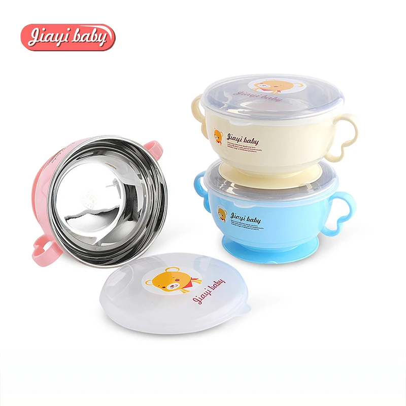BEST QUALITY Jiayi baby Bowl Set Feeding Cup Suction Plate BPA Free 304 Stainless Steel Bowl With Lid Filling Wa