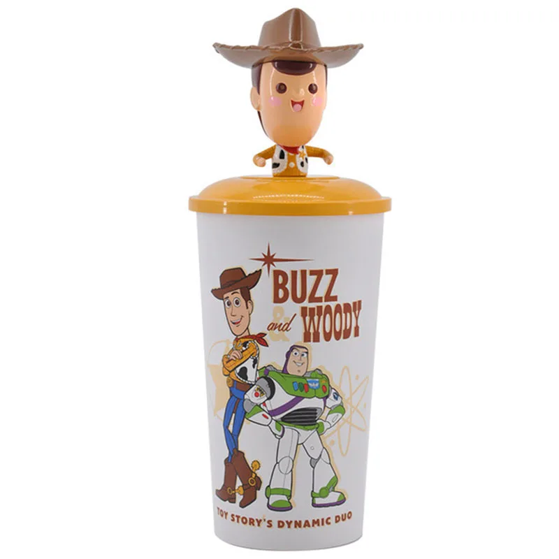 TOP Toy story Cartoon 3D Woody Buzz light cup with Straw cup disney birthday gift Child baby sports bot