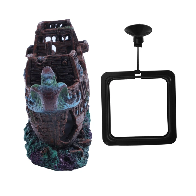 BEST QUALITY 2 Pcs Aquarium Deco: 1Pcs Wreck Cruise Ship Shipwreck Fish Resin 24X9.5X6.5Cm & 1Pcs Feeding Ring A